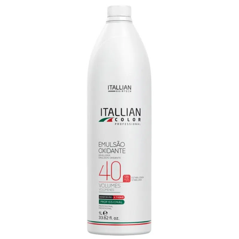Itallian Oxi 40 possui exclusiva fórmula com Silk PPO®, DENSFOR® e k.tyon-r® que, além de clarear, proporciona brilho acentuado e emoliência aos fios. É uma emulsão oxidante estabilizada para colorir e descolorir o cabelo em conjunto com a Coloração Itallian Color, Sopremo, Coloratto ou Pó descolorante Itallian Color Golden Silk. Permite abertura acima de 3 tons, enquanto sua textura facilita a distribuição da mistura pelos fios sem escorrer e destaca a intensidade final da cor.