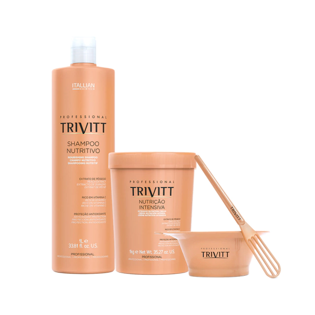 O KIT PROFISSIONAL TRIVITT NUTRIÇÃO é a solução ideal para cabelos que precisam de hidratação e nutrição intensiva. Composto por um Shampoo Nutritivo e um Creme de Ação Nutritiva, este kit proporciona um cuidado completo, restaurando a vitalidade e a beleza dos fios.